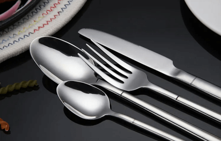 Knives, forks, spoons, chopsticks: Made from 420 (martensitic) stainless steel.